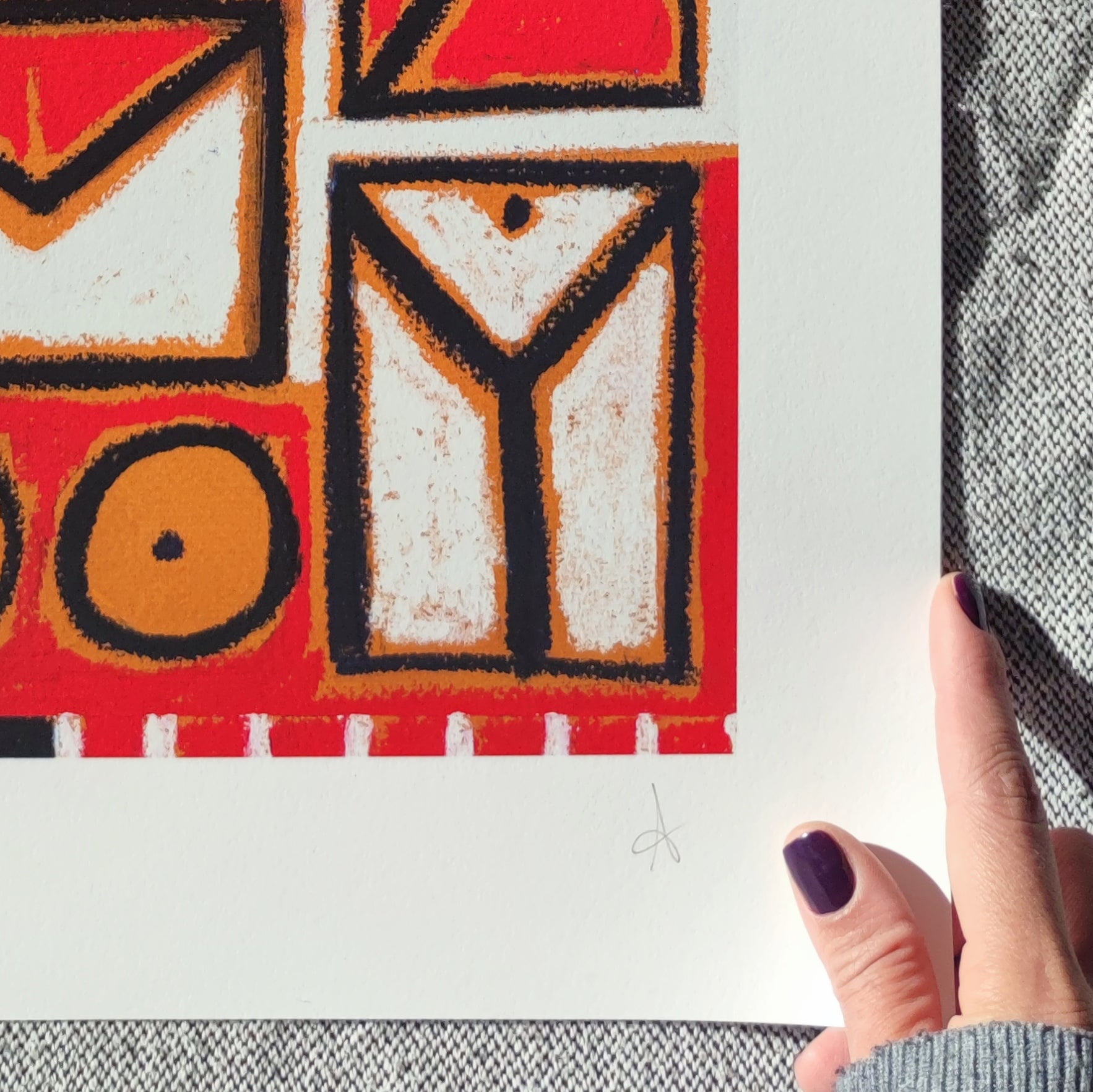 Signed and stamped for authenticity. The white border around the artwork is part of the print.