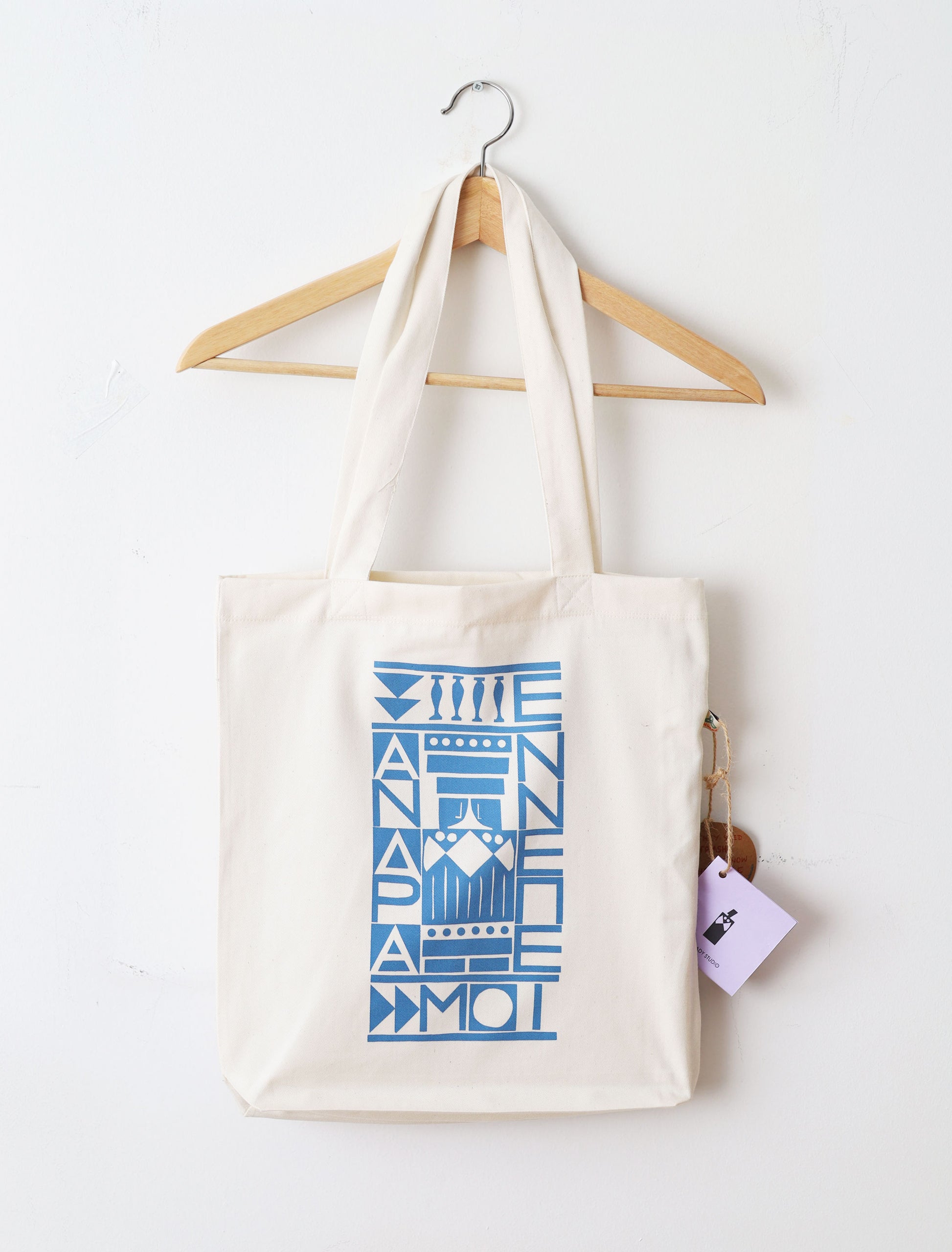 Soft canvas bag made from recycled materials with a screen-printed design.